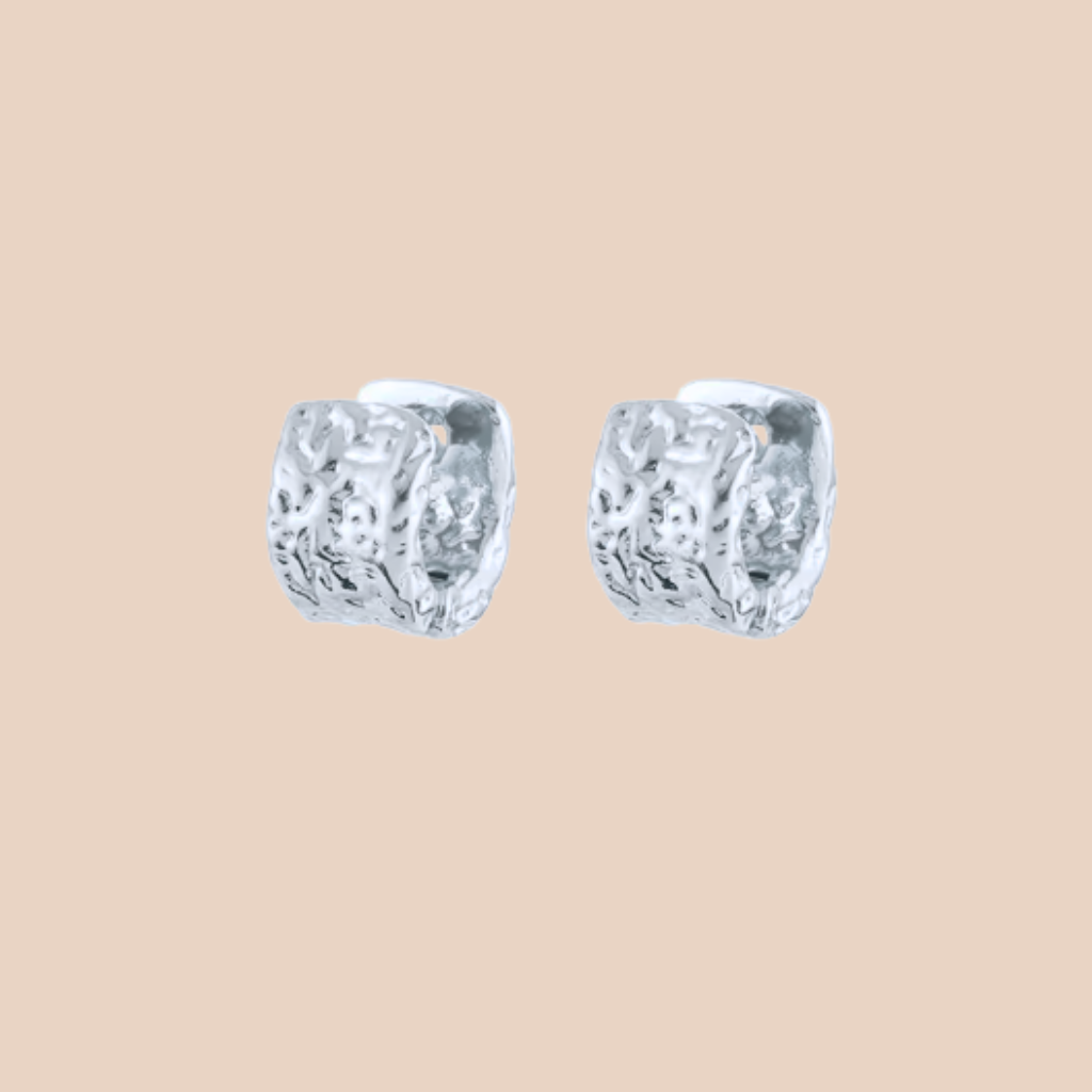 The Eclipse Crushed Silver Mini Hoops bring texture, shine, and that effortless cool-girl finish all in one. The crushed metal detail catches the light in the best way... subtle sparkle, zero try-hard energy.