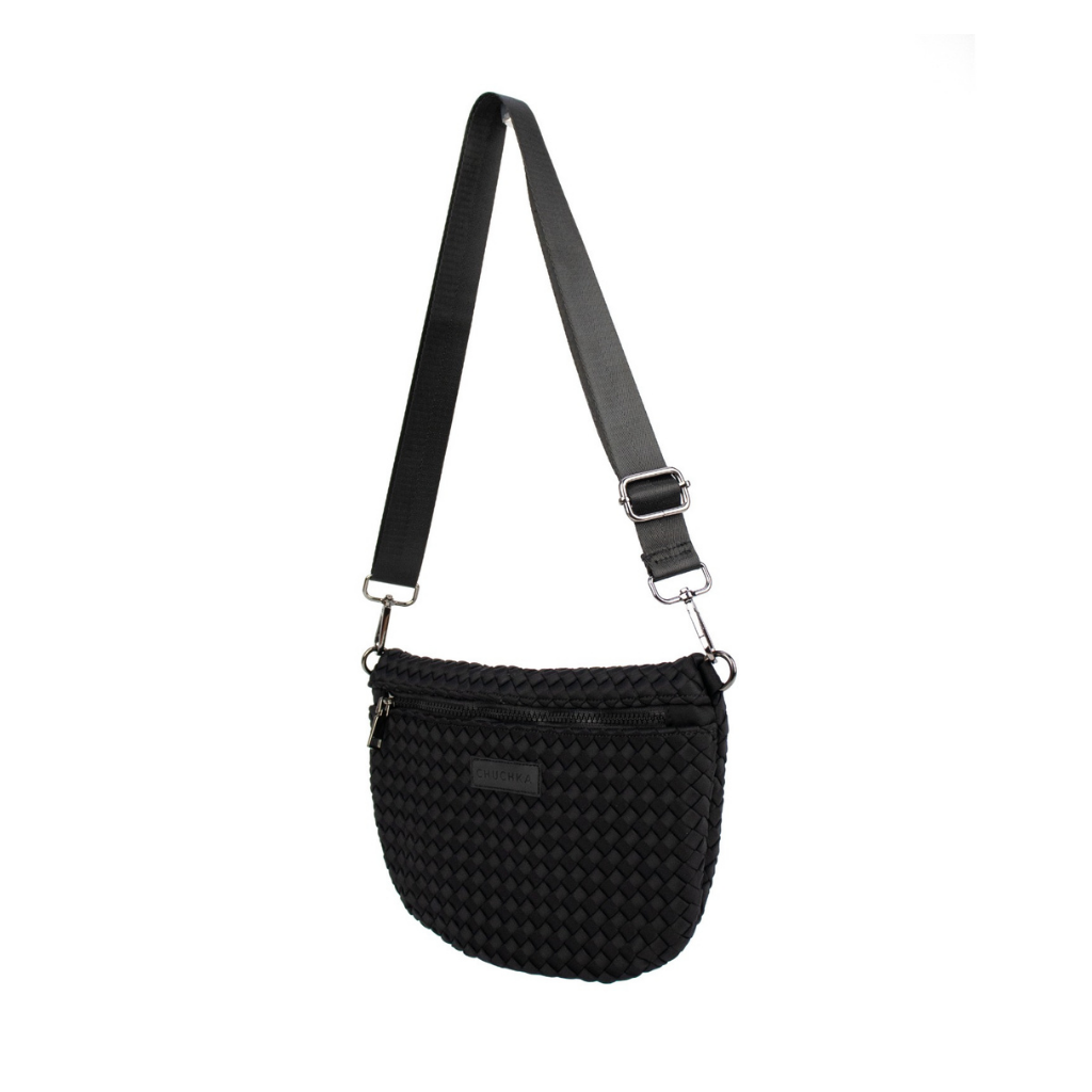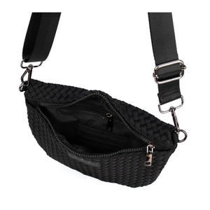Crafted from our signature woven neoprene, it delivers that luxe texture with an effortless edge. The curved silhouette sits comfortably against the body, while the adjustable strap lets you wear it your way; crossbody, over the shoulder, or classic around the waist.