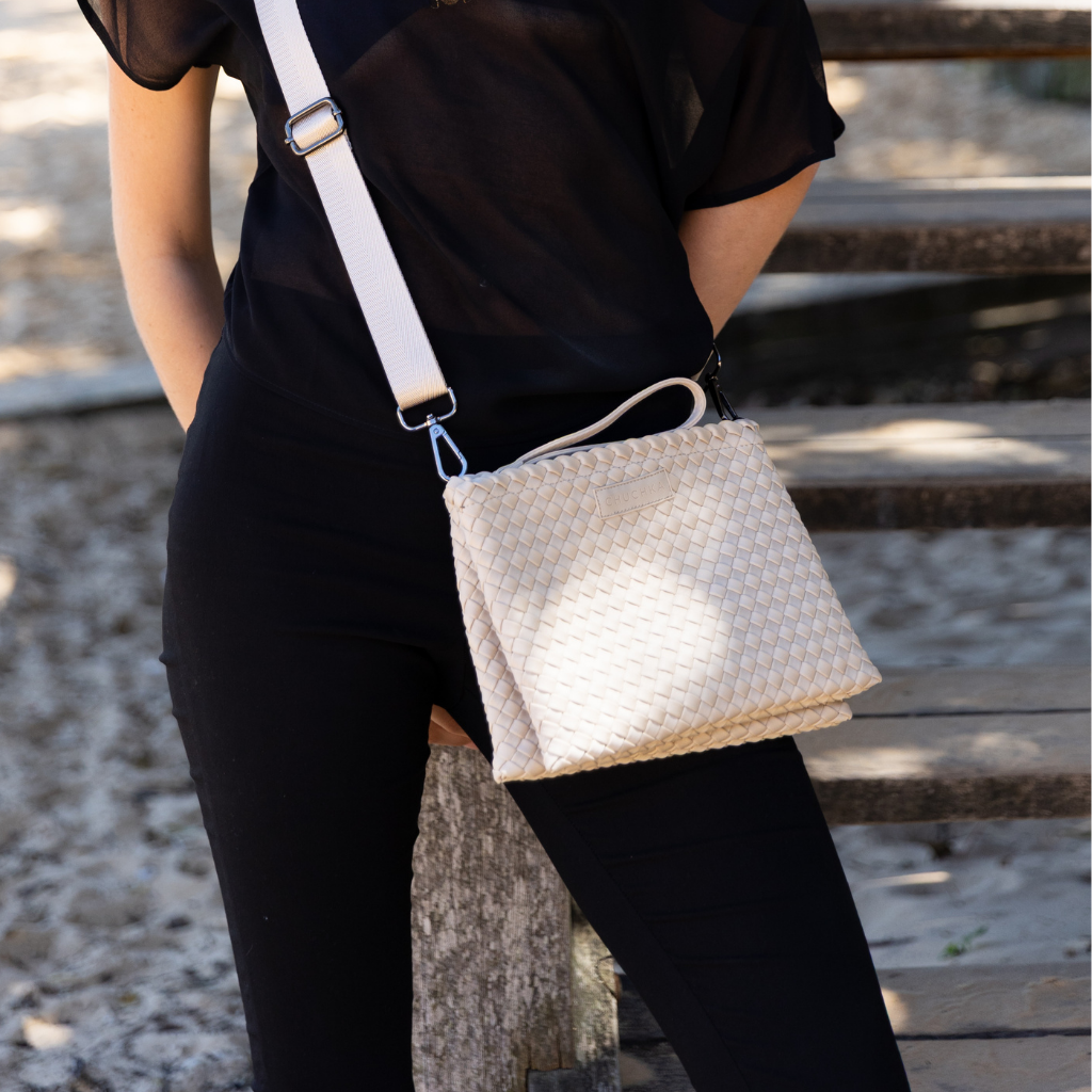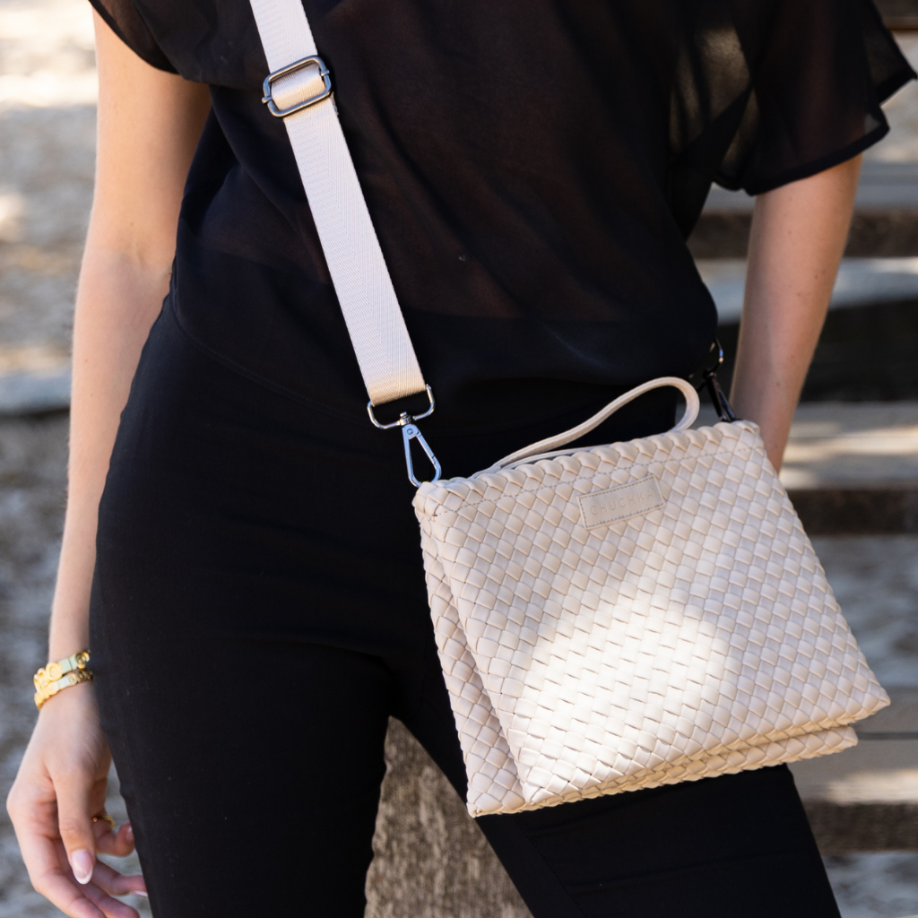 Crafted from our signature hand-woven neoprene, it delivers texture, durability, and that sporty-luxe edge Chuchka does best. The wide adjustable strap gives it a modern feel and lets you wear it crossbody or on the shoulder for hands-free ease.