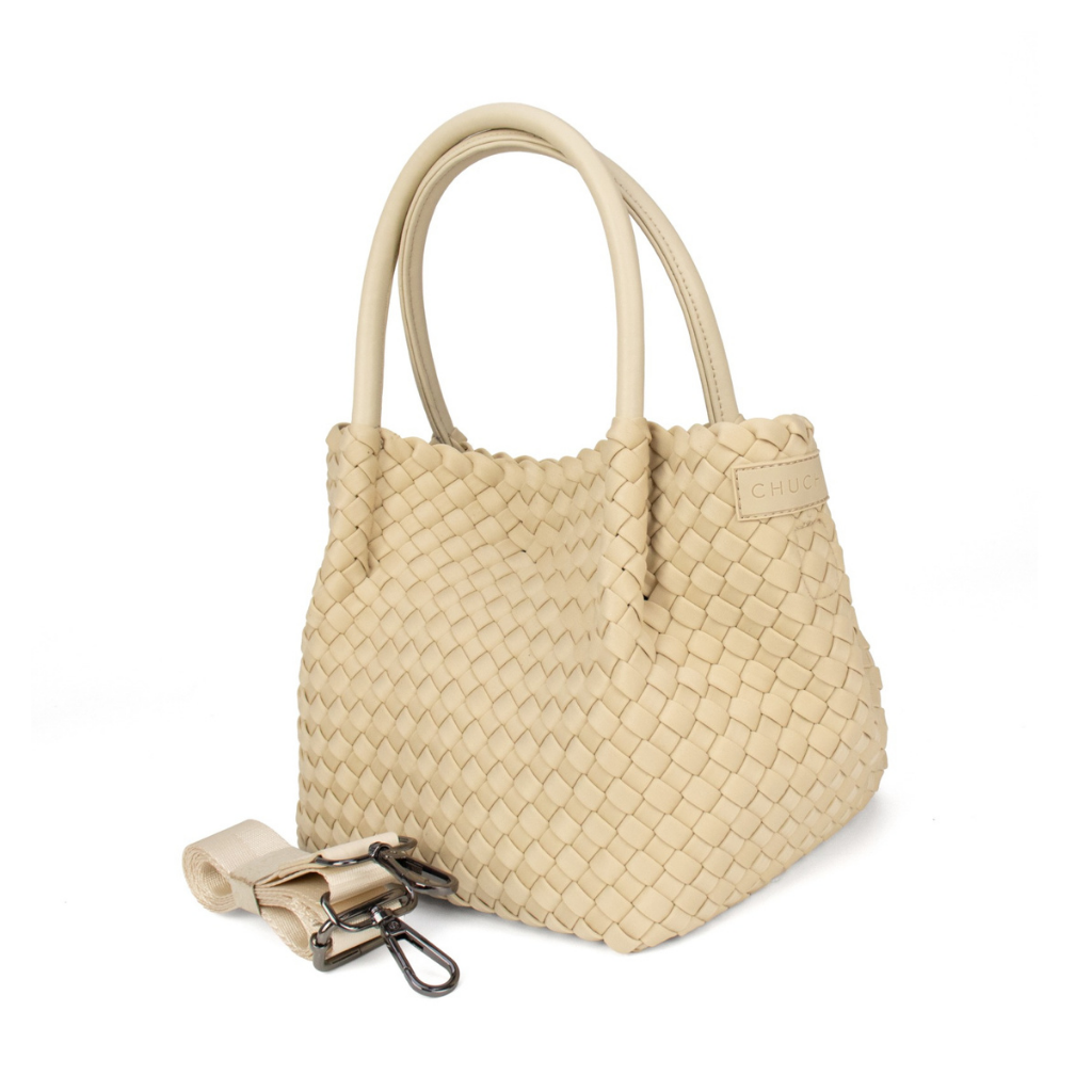 Meet the Woven Winona Neoprene Mini Tote in Beige. It's the compact version of our classic favourite, designed for lighter days without losing that polished, put-together feel. Structured, sleek, and effortlessly chic, it’s the bag that proves small can still make a statement.