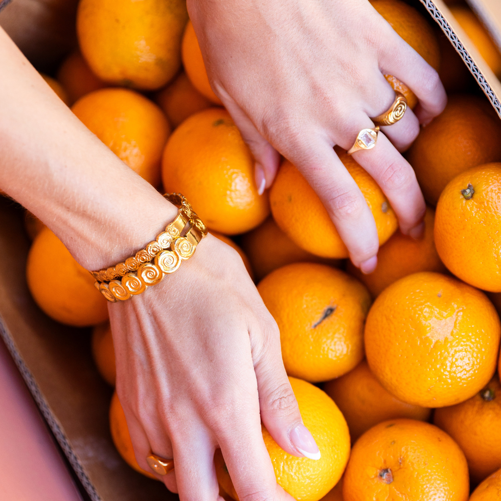 The Nova Large Swirl Bangle is where structure meets statement. With its amplified swirl silhouette and strong, sculpted form, this piece feels less like jewellery and more like wearable design. It’s bold, fluid, and made to be noticed, in the most refined way.