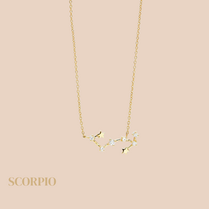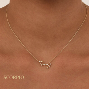 New to CHUCHKA: Our Zodiac Constellation Series. The Scorpio Necklace is one of the twelve available zodiac constellation necklaces with a mix of star and cubic zirconia gem features on a fine chain. Finish the look with other pieces from our Zodiac Collection.